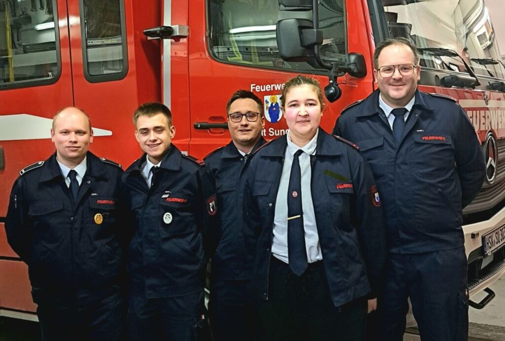 Im Rahmen der Versammlung nahmen Einheitenführer Kevin Schulz und sein Stellvertreter Tristan Babilon-Brüggemann zudem mehrere Beförderungen und Ernennungen vor: Anna Pütz wurde zur Feuerwehrfrau ernannt. Hannes Feldmann trägt künftig den Dienstgrad Oberfeuerwehrmann, Lukas Feldmann wurde zum Unterbrandmeister befördert.