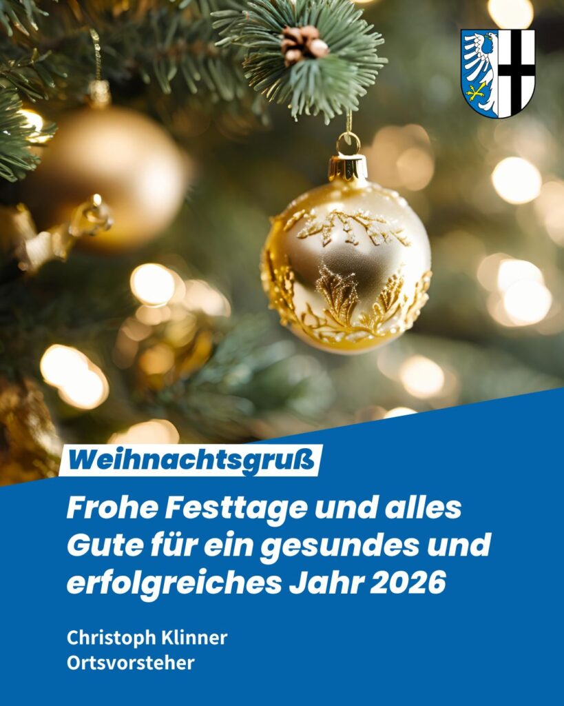 Ich wünsche Ihnen und Ihren Familien von Herzen ein gesegnetes und friedvolles Weihnachtsfest, erfüllt von Wärme, Nähe und schönen Momenten. Mögen die Feiertage Ihnen Ruhe und Freude schenken.